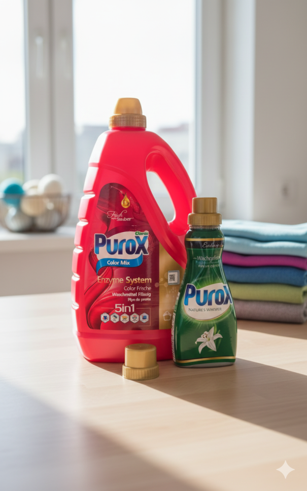 ПУРОКС ТЕЧЕН ГЕЛ ЗА ЦВЕТНИ ДРЕХИ 4000 МЛ 133 ПР + ПОДАРЪК ПАРФЮМ ЗА ДРЕХИ ПУРОКС 400 МЛ / ЧЕРВЕН/