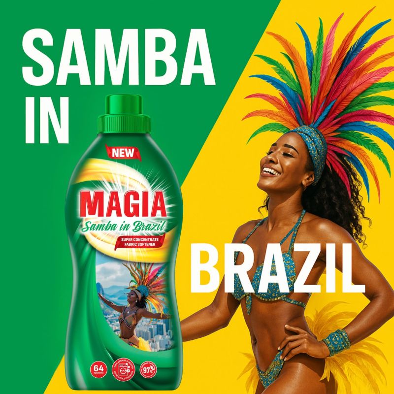 НАЙ-НОВИЯТ ОМЕКОТИТЕЛ “МАГИА” - SAMBA IN BRAZIL - СУПЕР КОНЦЕНТРИРАН ПАРФЮМЕН AРОМАТ, КОЙТО ГО Е ПОЛЗВАЛ МУ Е СТАНАЛ ЛЮБИМ - 1152 МЛ.