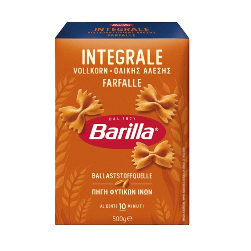 500 ГР. ПАСТА ИНТЕГРАЛЕ "БАРИЛА" - ФАРФАЛЕ - ПАНЕЛКИ, ПАСТАТА, КОЯТО Е НАЙ-ПРЕДПОЧИТАНА КАТО ФОРМИЧКИ И НАЙ-ТЪРСЕНА, НАЙ-ВИСОК КЛАС, БЪРЗО СЕ СВАРЯВАТ, ГОТОВИ ЗА НЯКОЛКО МИНУТИ, НАЙ-ИКОНОМИЧЕН ПАКЕТ
