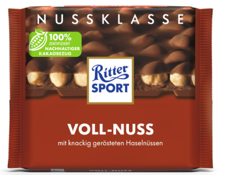 РИТЪР СПОРТ МЛЕЧЕН ШОКОЛАД С ЦЯЛ ЛЕШНИК 100 ГР / КАФЯВ /