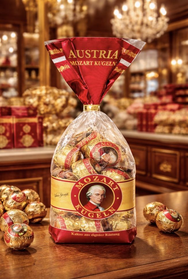 ЗА ЦЕНИТЕЛИТЕ НА КВАЛИТЕТНИТЕ ШОКОЛАДОВИ БОНБОНИ, ПРЕДЛАГАМЕ ''МОЦАРТ'' - ЛИМИТИРАН ВИД - С ШОКОЛАД, ЛЕШНИКОВ ПРАЛИН, МАРЦИПАНОВ ПЪЛНЕЖ И НУГА КРЕМ - ЕДНА НЕВЕРОЯТНА КУТИЯ С НАЙ-ВКУСНИТЕ И ПЕРФЕКТНО ИЗРАБОТЕНИ ОТ МАЙСТОРИТЕ НА ШОКОЛАДА - ШОКОЛАДОВИ ТОПКИ ИДЕАЛНИ ЗА ПОДАРЪК, 264 ГР