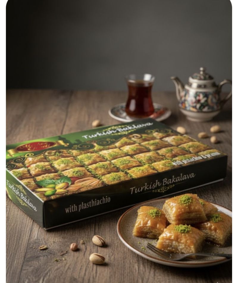 НАЙ-ВКУСНАТА ТУРСКА БАКЛАВА С ПИСТАЧИО - ШАМ ФЪСТЪК И ФЪСТЪЦИ, ПРИГОТВЕНА СТАРАТЕЛНО ОТ МАСТЪР ГОТВАЧИ ПО СПЕЦИАЛНА РЕЦЕПТА "EYUP EFENDI", В КУТИЯ, 400 ГР