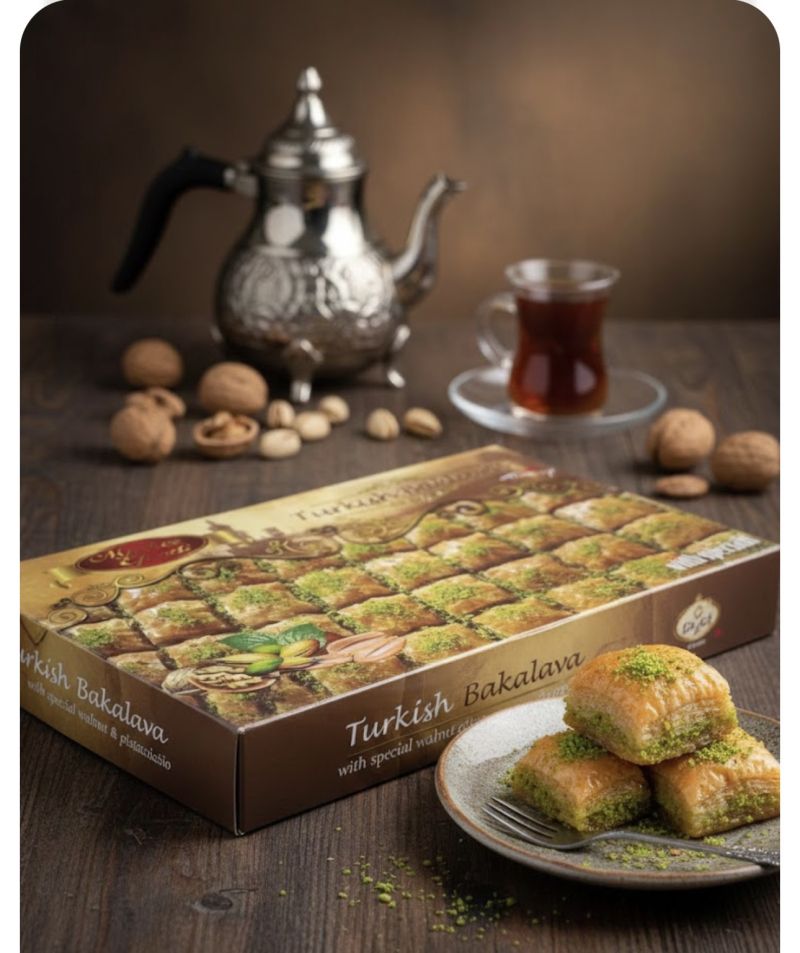 НАЙ-ВКУСНАТА ТУРСКА БАКЛАВА С ПИСТАЧИО - ШАМ ФЪСТЪК , ФЪСТЪЦИ И ОРЕХИ, ПРИГОТВЕНА СТАРАТЕЛНО ОТ МАСТЪР ГОТВАЧИ ПО СПЕЦИАЛНА РЕЦЕПТА "EYUP EFENDI", В КУТИЯ, 400 ГР
