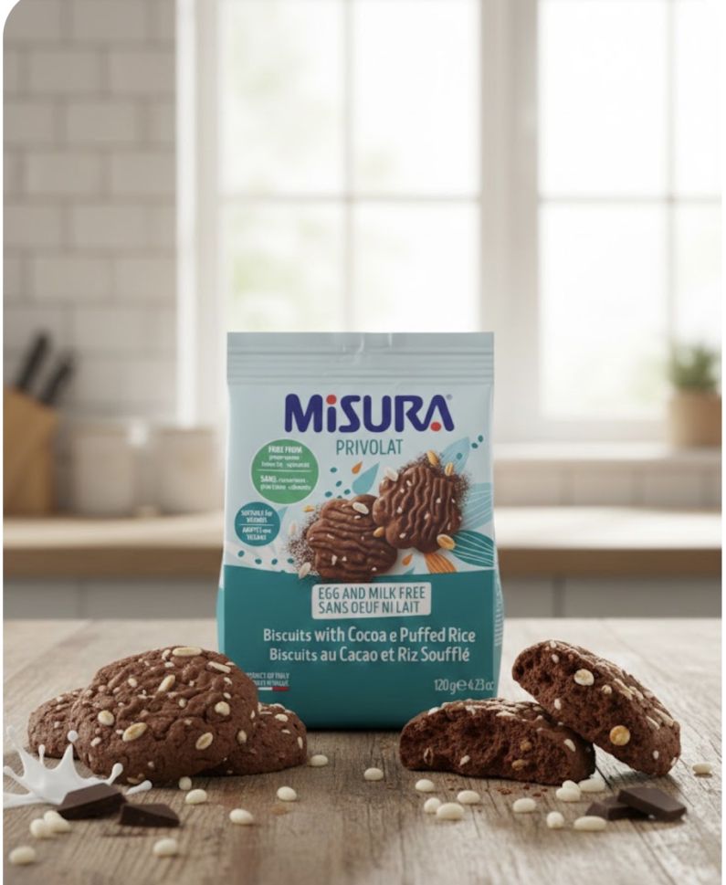 МИСУРА ОРИЗОВИ БИСКВИТИ С КАКАО БЕЗ МЛЯКО И ЯЙЦА 120 ГР