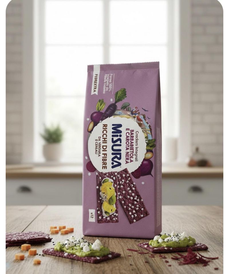 В ЗАБЪРЗАНОТО ЕЖЕДНЕВИЕ ВИНАГИ СИ ВЗИМАМ ПРОТЕИНОВИ ПЪЛНОЗЪРНЕСТИ КРЕКЕРИ С ЦВЕКЛО И ЧЕРЕН МОРКОВ 385 ГР- СЕГА НА ИТАЛИАНСКАТА МАРКА МИСУРА