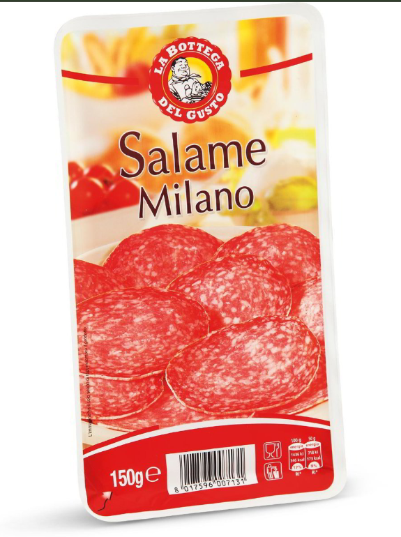 ТИПИЧЕН ИТАЛИАНСКИ САЛАМ В ИТАЛИЯ, ТОВА Е ТЕХНИЯ ЛУКАНКОВ - САЛАМ МИЛАНО, МОЖЕ ДА СЕ НАСЛАДИТЕ НА ИЗКЛЮЧИТЕЛНИЯ ВКУС КАТО ОПИТАТЕ, НАРЯЗАН В ТАРЕЛКА ОТ 150 ГР .