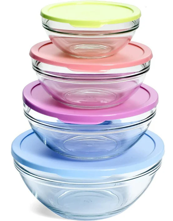 ИТАЛИАНСКИ СЕТ 5 СТЪКЛЕНИ КУПИ СЪС СИЛИКОНОВИ КАПАЦИ, В 5 РАЗМЕРА :