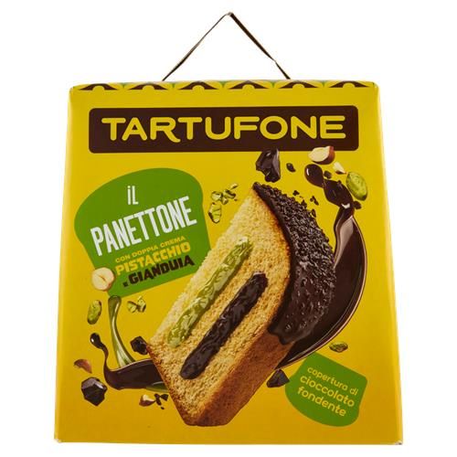 СЕГА ПРЕДЛАГАМЕ ЗА ВАС "PANETONE" TARTUFONE - ИТАЛИАНСКИ КЛАСИЧЕСКИ КОЗУНАК С МНОГО ТЕЧЕН ШОКОЛАД ПОЛЯТ ОТГОРЕ И ОТВЪТРЕ - МЕГА ГОЛЯМА ОПАКОВКА С ШОКОЛАД ДЖАНДУЯ И КРЕМ ОТ ШАМ ФЪСТЪК , 800 ГР