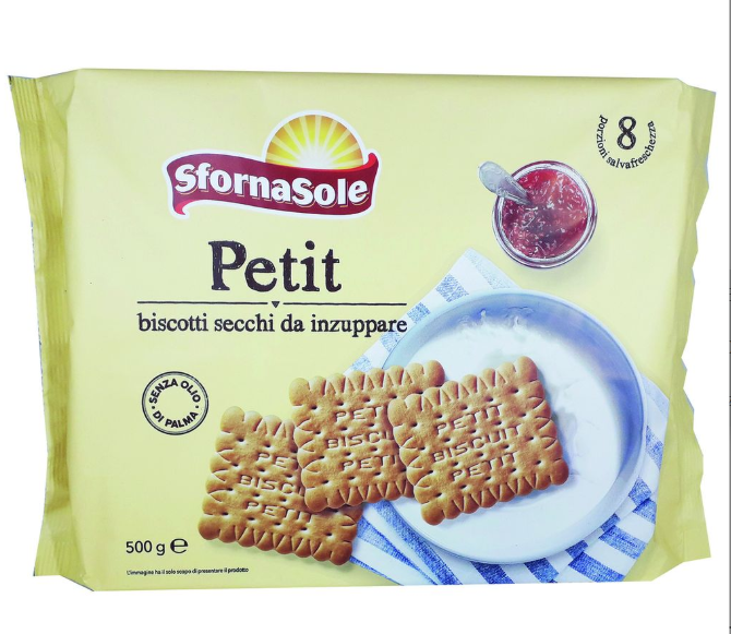 ОПИТАЙТЕ НАЙ-ВКУСНИТЕ ОБИКНОВЕНИ ИТАЛИАНСКИ БИСКВИТИ "СФОРНАСОЛЕ" PETIT, ПО ВКУСА ЩЕ ГИ ПОЗНАЕТЕ - ЕДНОВРЕМЕШНИТЕ ВКУСНИ БИСКВИТКИ, ИДЕАЛНИ ЗА СУТРЕШНА ЗАКУСКА С ЧАША МЛЯКО ИЛИ КАФЕ,В ПАКЕТ 500 ГР
