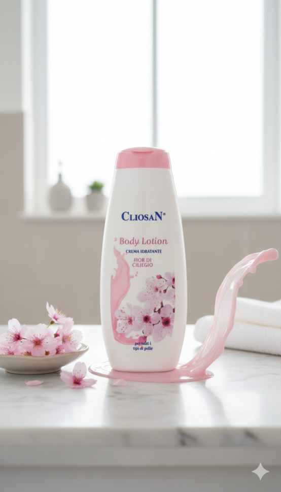 ЛОСИОН ЗА ТЯЛО “CLIOSAN” - С НОВИЯТ АРОМАТ ЦВЯТ ОТ ЧЕРЕША, - ПОДХОДЯЩ И ЗА МЪЖЕ И ЗА ЖЕНИ, ДАВА УСЕЩАНЕ ЗА БЛАГОПОЛУЧИЕ И РЕЛАКС, БЛАГОДАРЕНИЕ НА ИНТЕНЗИВНИЯ СИ АРОМАТ ТОЙ Е НЕЖЕН КЪМ КОЖАТА И Я ПРАВИ ПО-МЕКА И ХИДРАТИРАНА, НАЙ-ИКОНОМИЧНАТА ОПАКОВКА ОТ 750 МЛ