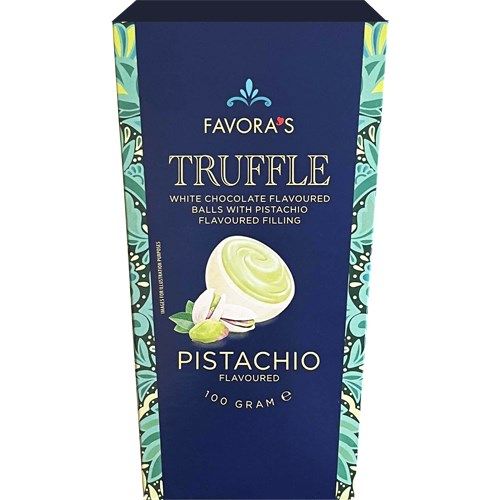 ФАВОРА ШОКОЛАДОВИ БОНБОНИ ТРЮФЕЛИ С БЯЛ ШОКОЛАД И ПИСТАЧИО КРЕМ 100 ГР /СИНЯ КУТИЯ/
