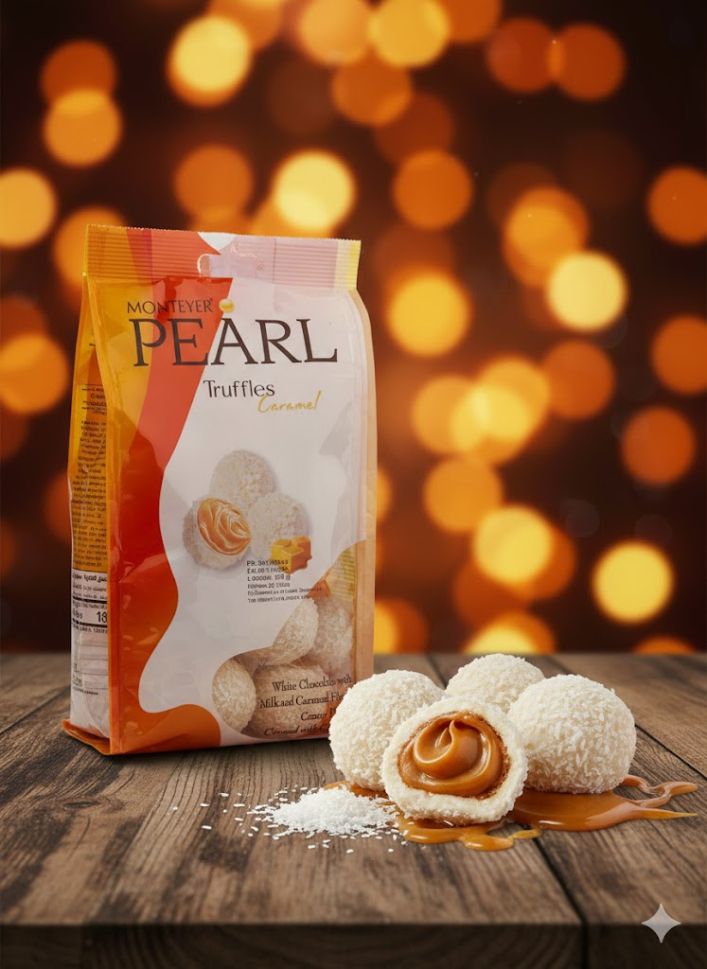 ШОКОЛАДОВИ БОНБОНИ ПЕРЛА КОКОС И КАРАМЕЛ 450ГР /ЖЪЛТИ/