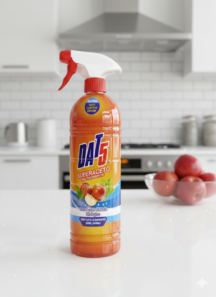 НОВОТО ОТКРИТИЕ "DAT 5" - ТОВА Е УНИКАЛЕН СПРЕЙ ЗА ПОЧИСТВАНЕ В ЦЯЛАТА КЪЩА- ИДЕАЛЕН ЗА ХЛАДИЛНИЦИ, ПЕЧКИ, МИКРОВЪЛНОВИ, ПЛОТОВЕ, МИВКИ, МАСИ, СТОЛОВЕ, ДЕТСКИ СТОЛЧЕТА ЗА ХРАНЕНЕ, БАТЕРИИ И ВСИЧКИ ТВЪРДИ ПОВЪРХНОСТИ, КОЙТО ДОПЪЛНИТЕЛНО ПРИДАВА БЛЯСЪК И ПРЕМАХВА ВСЯКАКВИ ЛОШИ МИРИЗМИ ОТ МАЗНИНИ И ХРАНИТЕЛНИ ОСТАТЪЦИ, 900 МЛ СПРЕЙ, С ЯБЪЛКОВ ОЦЕТ