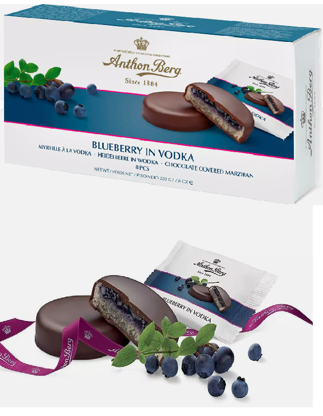 НАСЛАДЕТЕ СЕ САМО ТАЗИ СЕДМИЦА НА УНИКАЛНАТА ШОКОЛАДОВА СЕЛЕКЦИЯ НА "АНТОН БЕРГ" - ШОКОЛАДОВИ МАРЦИПАНОВИ СЛАДКИ БОРОВИНКА ВЪВ ВОДКА 8 БР 220 ГР