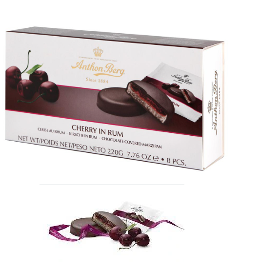 АНТОН БЕРГ МАРЦИПАНОВИ ШОКОЛАДОВИ СЛАДКИ ЧЕРЕША В РОМ 220 ГР