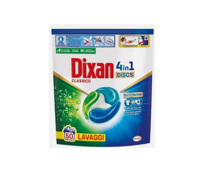 4 В 1 ИТАЛИАНСКИ ДОЗИ ЗА ПРАНЕ "ДИКСАН" ЗА УНИВЕРСАЛНО ПРАНЕ СЪС СПЕЦИАЛНА СЪСТАВКА ПРЕМАХВАЩА ПЕТНА БЕЗ ТЪРКАНЕ - С ПАРФЮМЕН АРОМАТ, ОПАКОВКА СЪС СТИЛ И КАЧЕСТВО, НОВА ФОРМУЛА С ДЪЛГОТРАЕН АРОМАТ ПО ДРЕХИТЕ, 50 БОМБИЧКИ, ХВЪРЛЯТЕ ПО ЕДНА В БАРАБАНА ПРИ ДРЕХИТЕ И НЕ ДОБАВЯТЕ НИЮО ДРУГО ИЗЛИШНО - ТУК Е ВСИЧКО НУЖНО - 50 БРОЯ В КУТИЯ