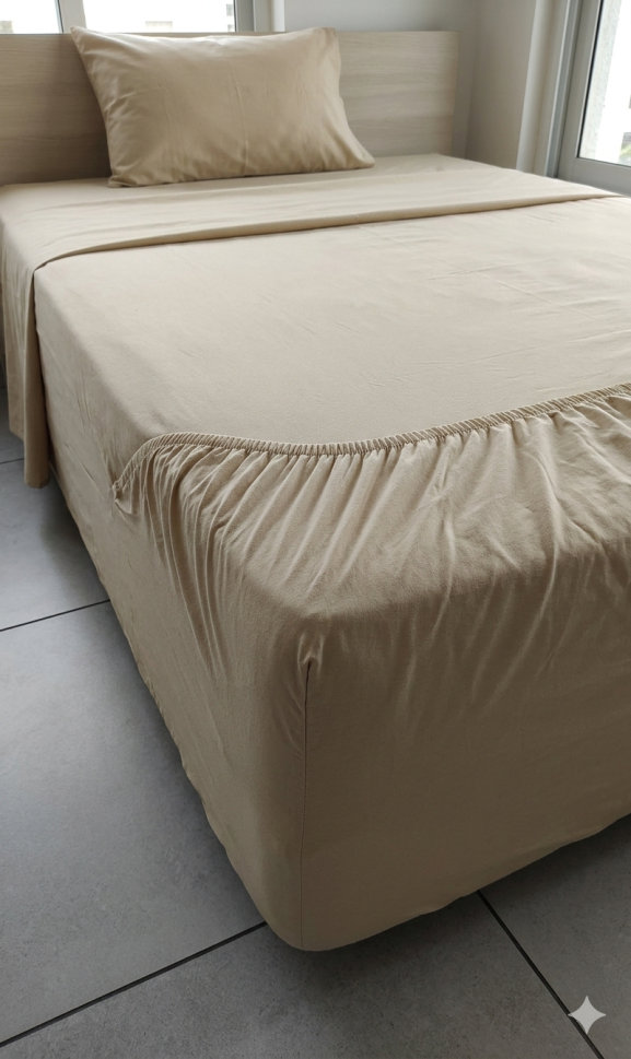 ЕДНОЦВЕТЕН ДОЛЕН ЧАРШАФ С ЛАСТИК БЕЖАВО ЗА СПАЛНЯ С РАЗМЕРИ 220 Х 240