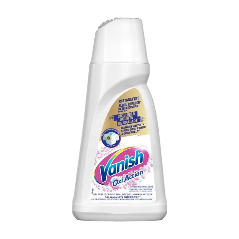 ПРЕПАРАТ ЗА ОТСТРАНЯВАНЕ НА ПЕТНА И УДЪЛЖАВАНЕ ЖИВОТА НА ДРЕХИТЕ - 1000 МЛ. Vanish Oxi Action открива петната по вашите тъкани и ги отстранява. Работи ефективно в студена вода (30 ° C) и в топла вода (60 ° C). Не съдържа хлор и е безопасен за цветовете. Новата формула на Vanish се разтваря по-бързо във водата, което я прави изключително ефективна.За бели дрехи