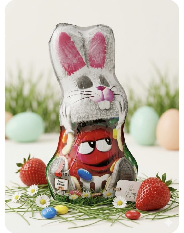 РАДОСТ ЗА МАЛКИ И ГОЛЕМИ - ОГРОМНИТЕ ЗАЙЧЕТА НА "М&M`S" - ВЪТРЕ ЗАЙЧЕТО Е ПЪЛНО С БОНБОНКИ КАТО БОНИБОН НА МАРКАТА - ЗАЙЧЕТО Е С ФИН МЛЕЧЕН ШОКОЛАД НАПРАВЕН С ЛЮБОВ ОТ МАЙСТОРИТЕ НА ШОКОЛАДА, ПОДАРЪК ЗА ВЕЛИКДЕН, 100 ГР