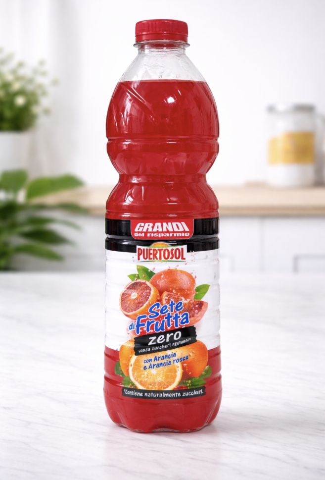 ОПИТАЙТЕ ОТ ИТАЛИАНСКАТА СЕРИЯ НАТУРАЛЕН СОК ПУЕРТОСОЛ - С ЧЕРВЕН ПОРТОКАЛ И КЛАСИЧЕСКИ ИТАЛИСНКИ ПОРТОКАЛИ - ОГРОМНА БУТИЛКА 1500 МЛ