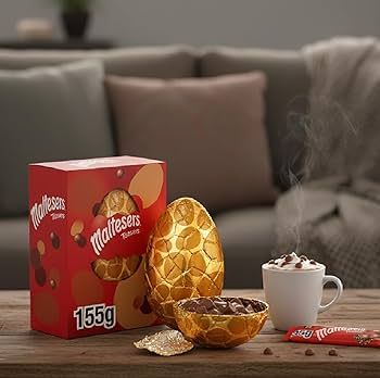 ГОЛЯМО ШОКОЛАДОВО ЯЙЦЕ "MALTESERS" СЪС СЮРПРИЗ ДЕСЕРТ НА МАРКАТА - 14 СМ Е ВИСОЧИНАТА НА ЯЙЦЕТО, НАПРАВЕНО ОТ ФИН МЛЕЧЕН ШОКОЛАД, В ЕЛЕГАНТНА КУТИЯ, КАТО ОТГОРЕ НА КУТИЯТА ИМА ЕТИКЕТ И МОЖЕ ДА СЕ НАПИШЕ ОТ КОГО ЗА КОГО Е ПОДАРЪК - 155 ГР