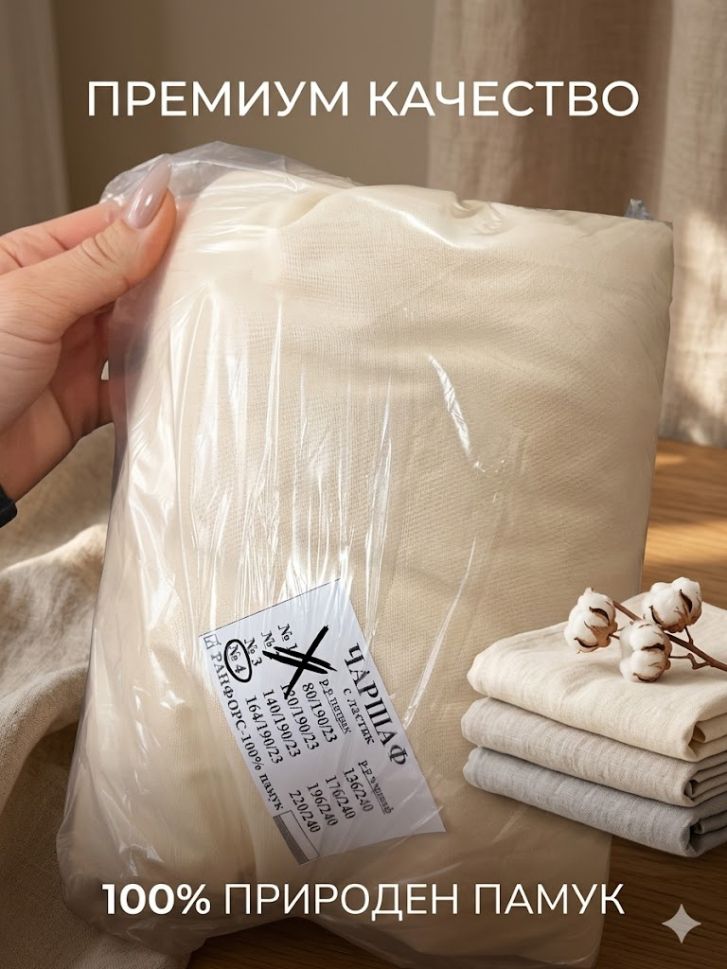 ЕДНОЦВЕТЕН ЧАРШАФ С ЛАСТИК СВЕТЛО БЕЖАВО 220 Х 240
