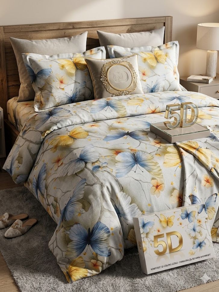 ЛУКСОЗЕН СПАЛЕН КОМПЛЕКТ 5 Д - 200 Х 220 СМ - СЪСТОЯЩ СЕ ОТ 3 ЧАСТИ - 2 ЦВЕТНИ КАЛЪФКИ И ЦВЕТЕН ГОРЕН ПЛИК, ИЗРАБОТЕН ОТ 100 % ПАМУК - НАЙ-ВИСОК КЛАС, СЪЧЕТАВАЩ В СЕБЕ СИ ПЛЪТНОСТ, МЕКОТА, СТИЛ И УЮТ