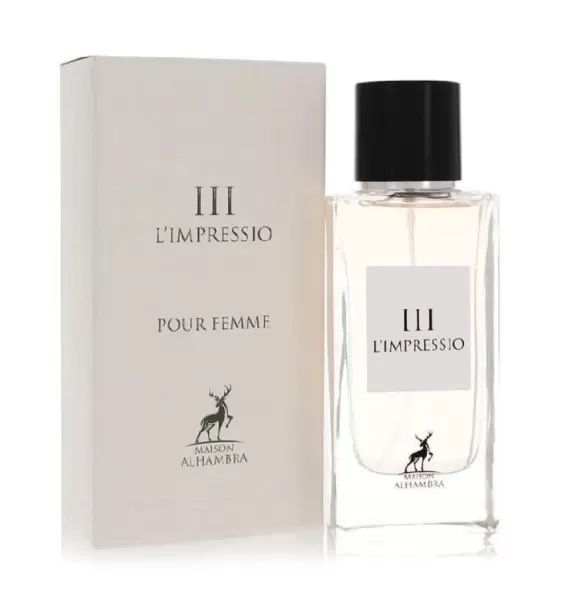 III L'Impressio Pour Femme от Maison Alhambra е аромат, който улавя същността на женската елегантност и загадъчност. Съчетавайки необичайни връхни нотки с класически цветни сърдечни нотки и дървесна основа, този аромат е идеален за жената, която цени аромат, който е едновременно отличителен и изящно изтънчен.
