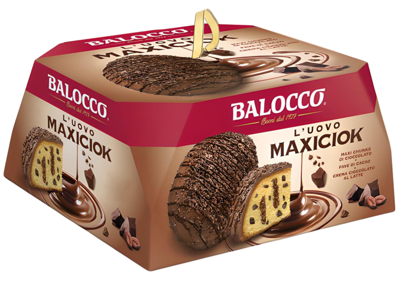 КЛАСИЧЕСКИ ВЕЛИКДЕНСКИ КОЗУНАК - МАКСИЧОК НА ВИСОКОКЛАСНАТА ИТАЛИАНСКА МАРКА "BALOCCO" С ТРОЕН ШОКОЛАДОВ ПЪЛНЕЖ ОТ МЛЕЧЕН ШОКОЛАДОВ КРЕМ, КАКОВИ ЗЪРНА И ПАРЧЕНЦА ШОКОЛАД , 750 ГР. /голяма опаковка/ В ЕЛЕГАНТНА КУТИЯ С ДРЪЖКА