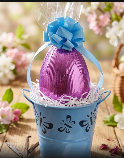 МЕТАЛНА КОШНИЧКА ПЪЛНА С ШОКОЛАДОВО ЯЙЦЕ И ИЗНЕНАДА ВЪТРЕ- 150 ГР - В СИН ЦВЯТ