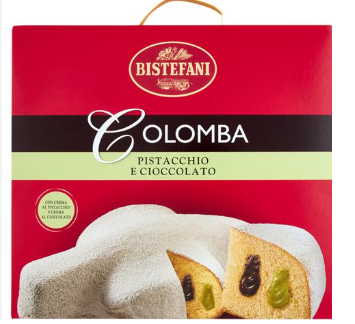 ВЕЛИКДЕНСКИ КОЗУНАК - КОЛОМБА НА ВИСОКОКЛАСНАТА ИТАЛИАНСКА МАРКА "БИСТЕФАНИ" ВИДА Е С ШОКОЛАД И ШАМ ФЪСТЪК, 700 ГР. /голяма опаковка/ В ЕЛЕГАНТНА КУТИЯ С ДРЪЖКА , А ОТГОРЕ Е ПОРЪСЕН С ПУДРА ЗАХАР