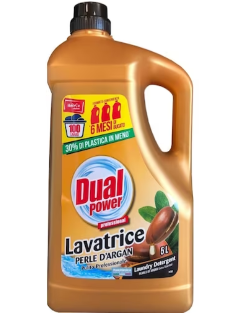 ИТАЛИАНСКИ ТЕЧЕН ГЕЛ ЗА ЦВЕТНИ И ТЪМНИ ДРЕХИ "ДУАЛ ПАУЪР", С АРОМАТ НА ПАРФЮМ - ЗАПАЗВА ЦВЕТА НА ДРЕХИТЕ ДОРИ И СЛЕД МНОГОКРАТНА УПОТРЕБА, ГОЛЯМА ОПАКОВКА ОТ 5000 МЛ ЗА 100 ПЕРАЛНИ