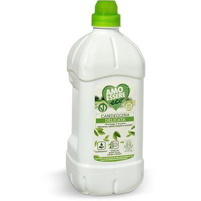 Деликатна белина за бели и цветни дрехи “АМО ЕСЕРЕ”, не оврежда нито материата на дрехите, нито променя цветовете, напротив ОСВЕЖАВА ГИ. Слага се 1 капачка в пералнята на всяко пране. ПРЕМАХВА ПЕТНА - ако петното е упорито се търка преди да се сложи в пералнята. Много подходяща и за килими и стелки. 1500 МЛ.