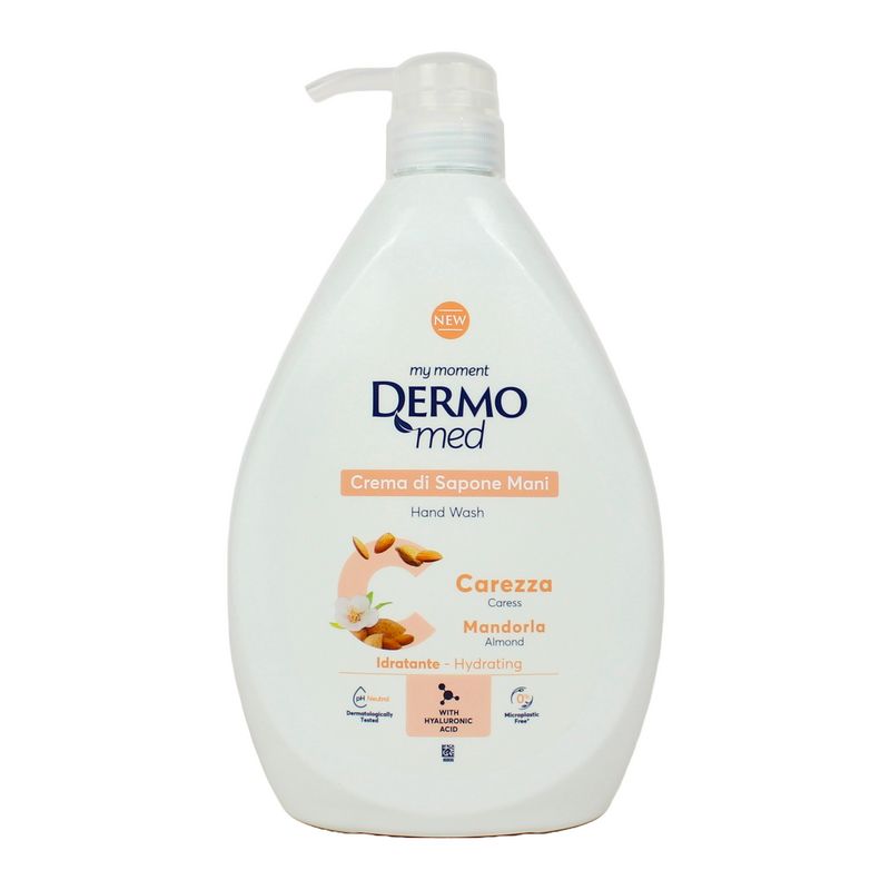 ТЕЧЕН САПУН БЕЗ ПАРАБЕНИ, СИЛИКОНИ И ОЦВЕТИТЕЛИ "ДЕРОМЕД" С АРОМАТ НА МЛЯКО ОТ БАДЕМ - УДОБНА ОПАКОВКА С ПОМПА - 300 НАТИСКАНИЯ, ОМЕКОТЯВА И ХИДРАТИРА КОЖАТА, ПРИДАВА ЖИЗНЕНОСТ И СВЕЖЕСТ, ЗА РЪЦЕ И ЛИЦЕ, ДЕРМАТОЛОГИЧНО ТЕСТВАН, ph 5.5, 1000 МЛ