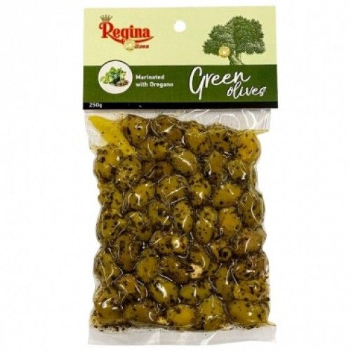 РЕДЖИНА ЗЕЛЕНИ МАСЛИНИ С РИГАН И ЧЕСЪН 250 ГР /ПЛИК/