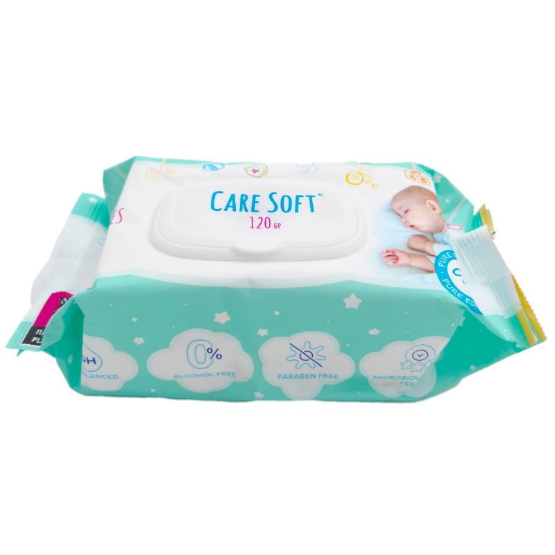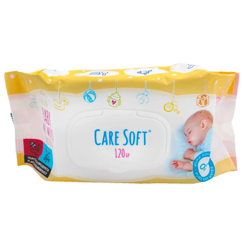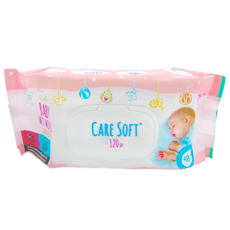 СУПЕР ИЗГОДНИ БЕБЕШКИ МОКРИ КЪРПИ "CARE SOFT" - 120 БР С КАПАК - 98 % ВОДА - СПЕЦИАЛНО СЪЗДАДЕНИ ЗА ЧУВСТВИТЕЛНА КОЖА