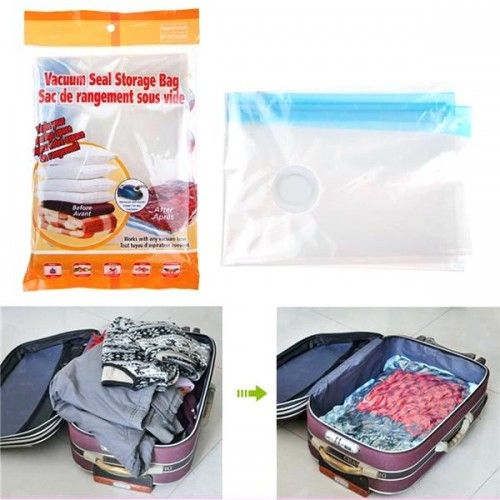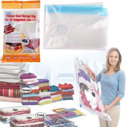 Практичен вакумен плик 80 х 100 см. С него бързо и лесно ще въдворите ред в претрупаните шкафове и гардероби. Удобни и за пътуване като смалите размера на дрехите и поберете повече в куфара или сака. С вакумният плик ще освободите много място. Лесен за употреба. Запечатвате и изсмуквате въздуха с прахосмукачката.