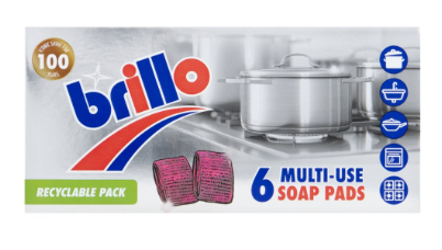 БРИЛО ЦЯЛА КУТИЯ С ТЕЛЧЕТА НАПОЕНИ С ПРЕПАРАТ ЗА ПРЕМАХВАНЕ НА ЗАГОРЕЛИ МАЗНИНИ - 6 БР -