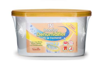 ВЛАГОАБСОРБАТОР - АРОМАТИЗАТОР , ЛЕСЕН И БЪРЗ НАЧИН ДА СЕ СПРЕ ВЛАГАТА, ПЛЕСЕНТА, МУХЪЛА И КОНДЕНЗА В РАЗЛИЧНИ ПОМЕЩЕНИЯ У ДОМА ИЛИ В ЗАТВОРЕНИ ПОМЕЩЕНИЯ КАТО ГАРДЕРОБ, КАРАВАНА, ЯХТИ И ДР, 180 ГР С АРОМАТ НА ВАНИЛИЯ