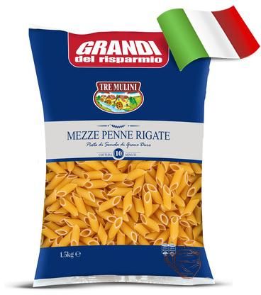 ПАСТА "TREE MULINI" - МЕЗЕ ПЕНЕ РИГАТИ - МНОГО ПРИЛИЧАТ НА СТАНДАРТНИТЕ ПЕНЕ РИГАТЕ, НО МАЛКО ПО-КЪСИ, НАЙ-ВИСОК КЛАС, БЪРЗО СЕ СВАРЯВАТ, РЯДКО СРЕЩАНИ КАТО ПРЕДЛАГАНЕ, ОГРОМЕН ПАКЕТ, НАЙ-ИКОНОМИЧЕН 1500 ГР