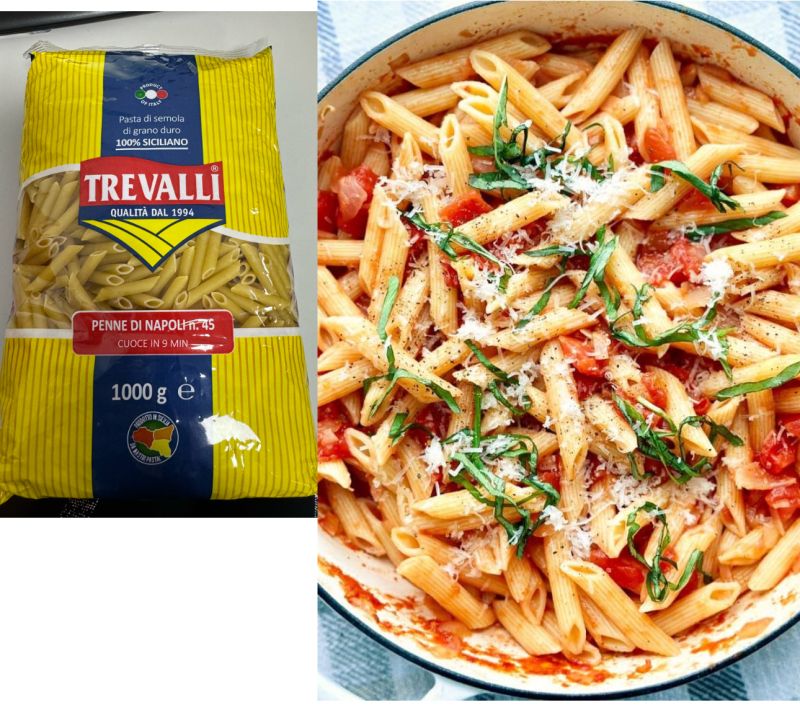 1000 ГР. ПАСТА "TREVALLI" - № 45 - ПАСТА ПЕНЕ ОТ НАПОЛИ, ЛИМИТИРАН ВИД, КОЯТО Е МНОГО РЯДКО СРЕЩАНА ПО ВЕРИГИТЕ МАГАЗИНИ В ИТАЛИЯ, НАЙ-ВИСОК КЛАС, НАЙ-ГОЛЯМ ПАКЕТ, БЪРЗО СЕ СВАРЯВАТ, НЕ СЕ СЛЕПВАТ И СТАВАТ УНИКАЛНО ВКУСНИ И С БЯЛ И С ЧЕРВЕН СОС