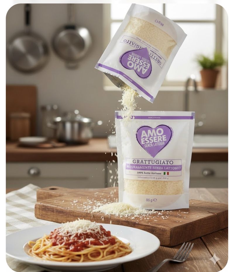 “AMO ESSERE” НАСТЪРГАНО ИТАЛИАНСКО ПАРМЕДЖАНО - ПОДХОДЯЩО ЗА ДОБАВКА КЪМ СПАГЕТИ, ПАСТА, ЛАЗАНЯ, ПИЦИ, САЛАТИ, ПАКЕТ ОТ 85 ГР С ЦИП
