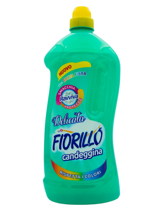 Деликатна белина за бели и цветни дрехи “FIORILLO”, не уврежда нито материята на дрехите, нито променя цветовете, напротив ОСВЕЖАВА ГИ. Слага се 1 капачка в пералнята на всяко пране. ПРЕМАХВА ПЕТНА - ако петното е упорито се търка преди да се сложи в пералнята. Много подходяща и за килими и стелки.