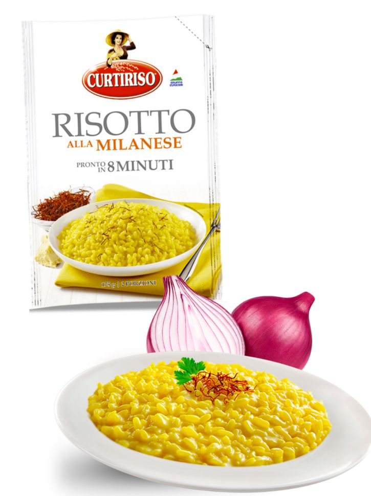 ТИПИЧНОТО МИЛАНСКО РИЗОТО БЕЗ ГЛУТЕН НА ИТАЛИАНСКАТА МАРКА " CURTIRISO“ НАПРАВЕНО ОТ 100 % ИТАЛИАНСКИ ОРИЗ, ГОТОВО ОВКУСЕНО, ОПАКОВКАТА Е ДОСТАТЪЧНА ЗА 2 ПОРЦИИ