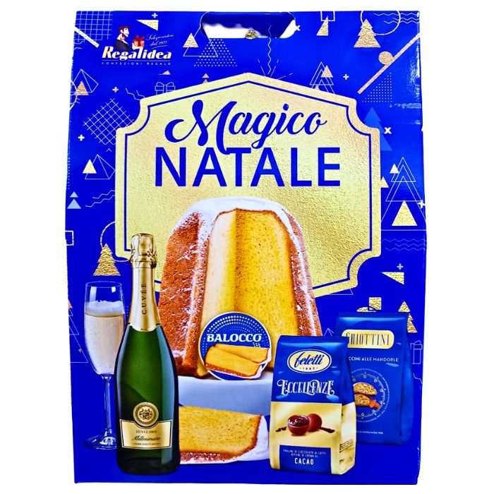 ИТАЛИАНСКИ НОВОГОДИШЕН БОКС БАЛОКО С ПАНДОРО ШАМПАНСКО И ЛАКОМСТВА /СИНЯ КУТИЯ/
