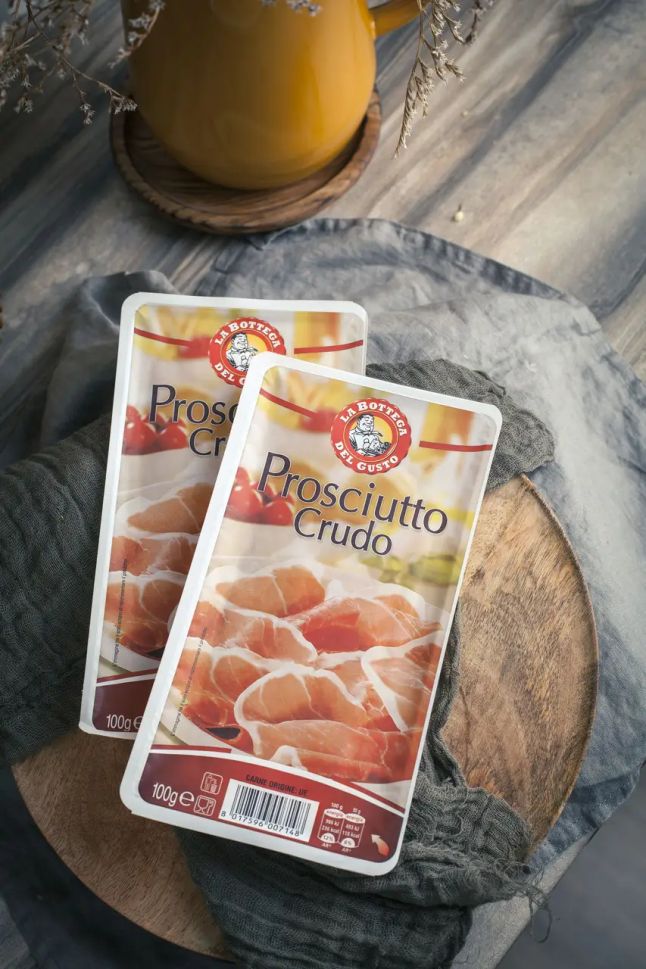 ЗА ЛЮБИТЕЛИТЕ НА ИСТИНСКОТО МЕСО ПРЕДЛАГАМЕ: ПРОШУТО - КРУДО, ПРЕДСТАВЛЯВА СУШЕНО СВИНСКО МЕСО ОТ БУТ, НАПРАВЕНО ПО СПЕЦИАЛНА ИТАЛИАНСКА РЕЦЕПТА, ГОТОВ ЗА ДИРЕКТНА КОНСУМАЦИЯ, В УДОБНА ОПАКОВКА 100 ГР, НАРЯЗАНИ НА ФИННО В ТАРЕЛКА